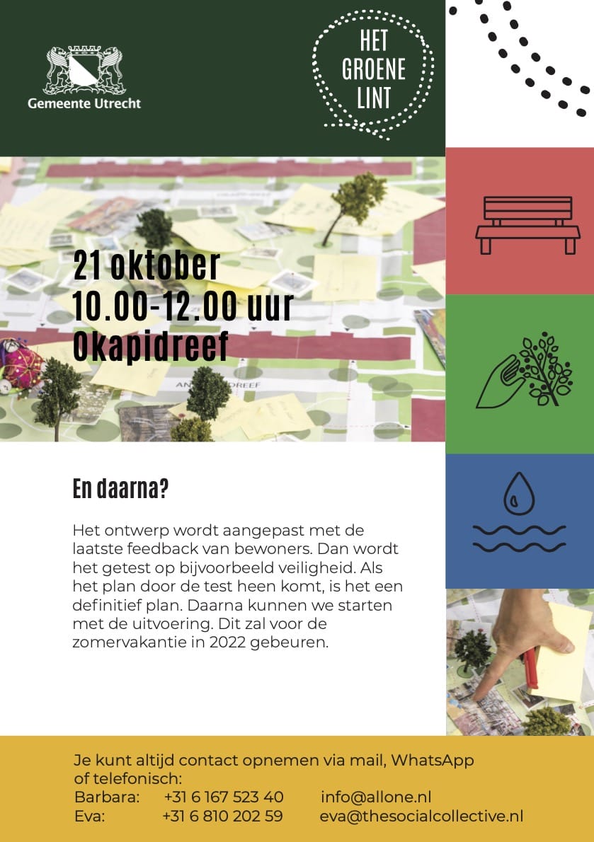 In deze periode hebben we ingezet op netwerken, netwerken, en nog eens netwerken. Gezichten en namen leren kennen, voelen wat er speelt in de leefwereld van bewoners rondom deze plekken. Gehoor geven aan wensen van die vrij gemakkelijk te realiseren zijn zoals moestuinbakken, bankjes & activiteiten. De kennis en het netwerk dat we opdoen gebruiken we voor de volgende plekken binnen het Groene Lint.