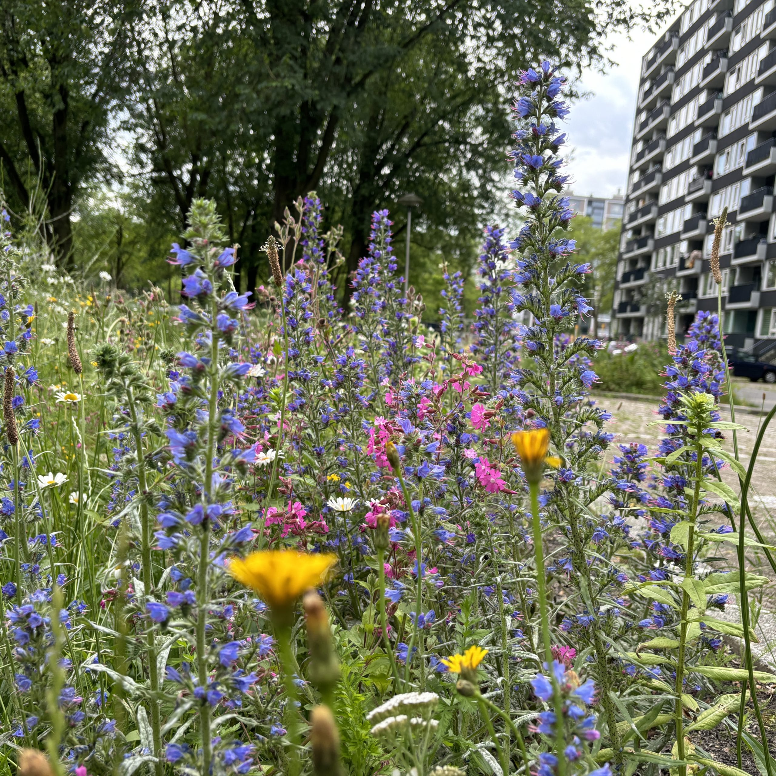 Door kleinschalige experimenten met picknickbanken, een moestuin bak, een bibliotheekkast en bijzondere beplanting en bloembollen langs de Carnegiedreef en Zamenhofdreef is in 2021 gestart met de ambitie van het Groene Lint door de wijk.